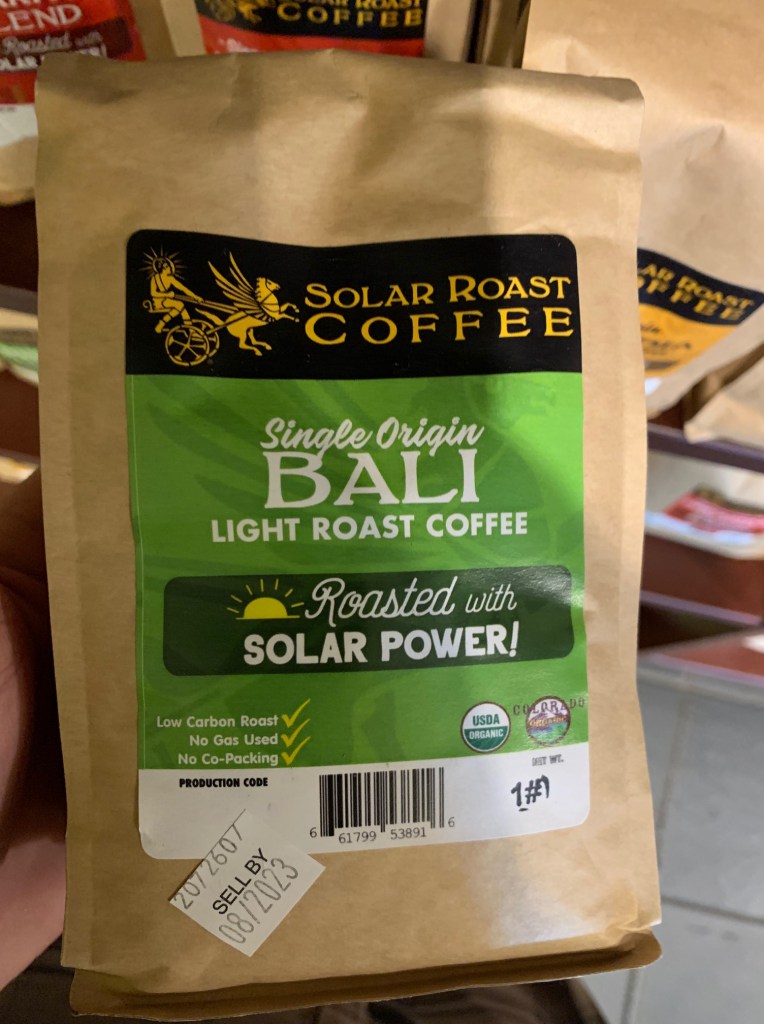 As the name implies, Solar Roasters roasts their beans using an electric solar oven contraption called a Helios. With this machine, they can roast up to 15 pounds of beans in 25 minutes. The process is supposed to result in lower acidity and smoothness in the brew. In the notes on the bag, they liken the process to slow and low temperature cooking for bar-be-que. In fact, they use more space on the bag explaining the roasting process than they do describing the beans themselves. Intrigued, I gave it a shot since I prefer a lower acidity brew anyway. I opted for the Bali light roast.